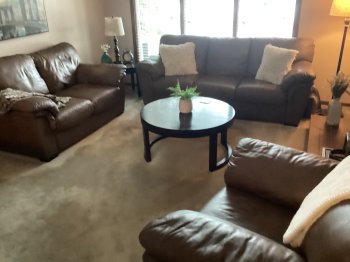 Brown leather sofa and love seat with matching chair. Good shape except love seat has small tear. No delivery. Pick up only. Cash only. Will consider offers. No phone calls text only please. 204-720-1162.