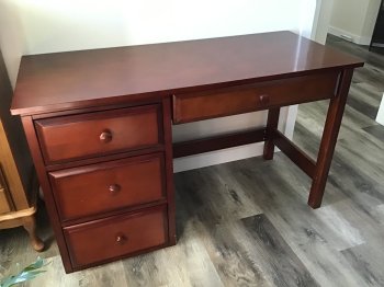 Solid wood convertible loft bed. Can be toddler bed or regular twin bed. Matching dresser, desk, and bookshelf. I have instructions for bed. Will consider selling pieces separately.