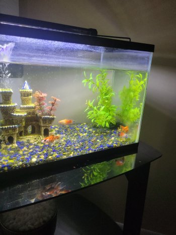 Selling my aquarium complete with 4 gold fish ornaments light pump all for $120