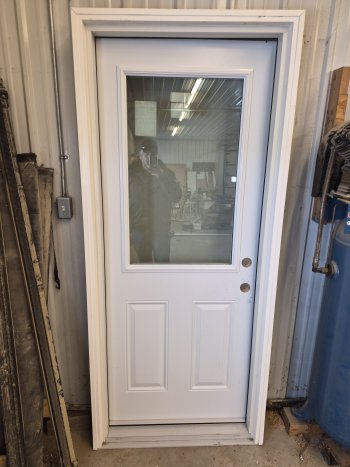 Insulated exterior door with clear half glass.. 2ft 8inch. LH inswing. 4 inch jamb. This door was installed and had very light use for a short time. It was ordered as a wrong swing and had to be replaced. It is in new condition.