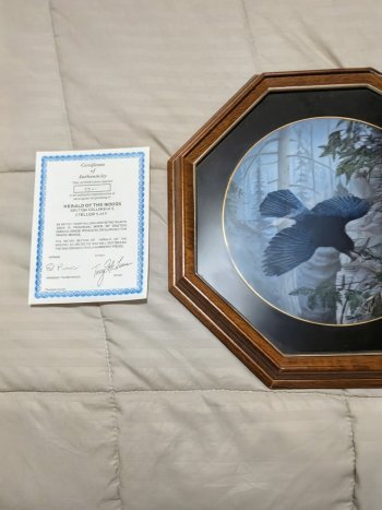 Terry Mclean framed plate - Herald of the Sky (blue Jay) - certificate and original box available.