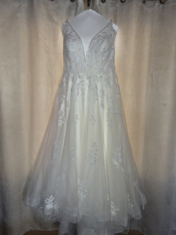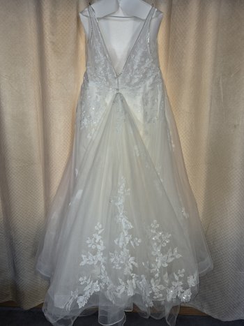 Worn only one night, professionally cleaned. Paid over $2k from David's Bridal, no alterations done other then removing a layer of fabric and button added for train. Very beautiful dress. Located in Souris but could bring to Brandon.