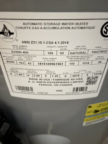 50 gallon John Wood gas hot water heater