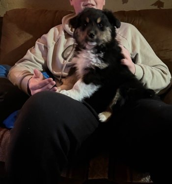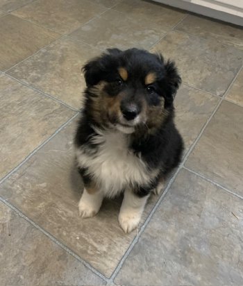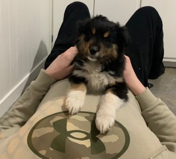 His Parents are pure bred, sire is small Australian Shepherd and dam is Shetland Sheepdog. Both of these herding breeds are loyal, intuitive and easy to train. They are great with children and other animals. He was born Jan. 15 He was raised indoors, but loves it outside when the weather is nice. A farm, acreage or fenced back yard is a must for this guy. ph.# is a landline