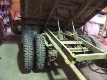 .For sale dump box 12' x8'6" and 40" high. Smooth floor. New electric start engine to run hydraulics. 8.25 tires. Adjustable hitch for height..