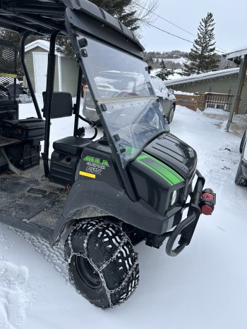 Extras: 5 ft snow blade, 3500 lb winch, folding windshield, chains on tires