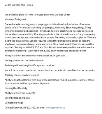 Fax: (204) 727-2861 Phone: (204) 728-5801 ext. 126
