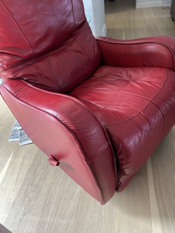 Red Leather Chair with manual reclining.