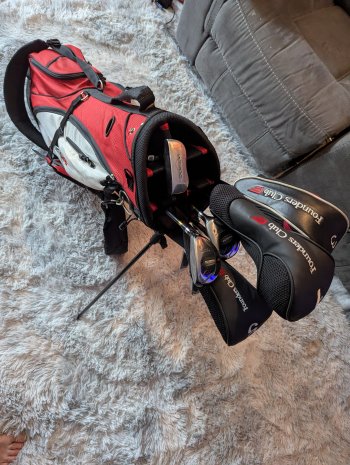 Set of right-handed, recently reconditioned Founders Club golf clubs. All original except for the driver and putter.