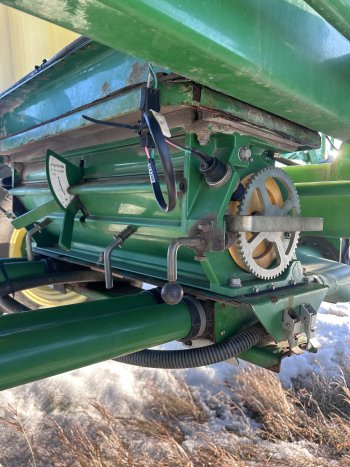 2008 John Deere 1830 40? drill with 1910 270 bu cart. We have owned it since 2014 and are the second owners. It has 10? spacing with 3? Dutch spread tip carbide openers that were changed about 2500 acres ago. It has steel packers, and the main frame packers have been capped to prevent denting from rocks. It has a John Deere primary blockage sensor system. The tank has never had fertilizer in the rear. There is a cab cam backup camera and a camera in the rear tank. The tank has had 28L 26 tires put on the rear for flotation. The fan motor is only 1 year old. Works as it should just upgraded to a 50?.