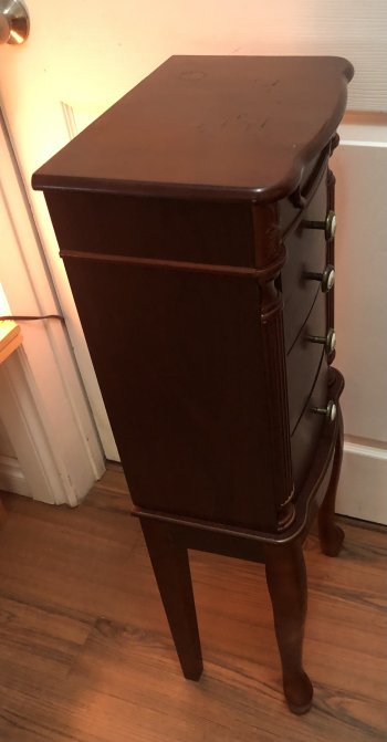 -Has 4 Nice Size Felt-Lined Drawers For Storing Jewelry & 1 Top Drawer With Lid That Lifts Upward To Access Mirror & Store Jewelry