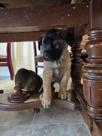 She is very sweet and smart. Loves being outside and has a very calm temperament. Biggest pup of the litter.