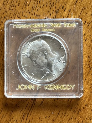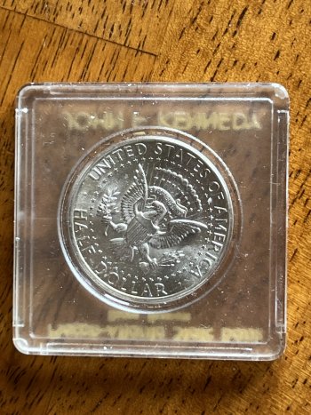 Uncirculated 1964 John F Kennedy US half dollar in original bank protective case. The coin appears to be brilliant uncirculated, the only visible defect being some tiny bag marks. The coin is the only Kennedy minted with 90% silver and is the first coin issued after Kennedy's death. It contains..3617 Troy ounces of silver. A highly sought collector gem!