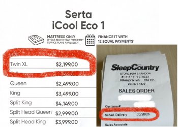 Purchased from Sleep Country but they are non-refundable. We brought these home then realized this setup wouldn?t work for us. These are NEW and packaged in mattress bags.