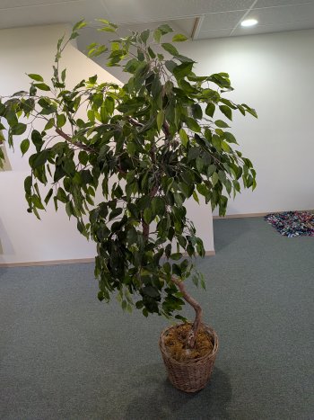 Silk foliage, real wood trunk, fig tree. 6 feet in height.