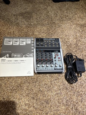 Behringer 6 input audio with two xlr inputs for microphones. Comes with manual and power pak. In like new condition.