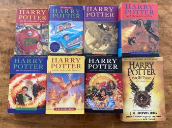 Harry Potter complete 8 book series. Great condition. One paperback and seven hardcover.