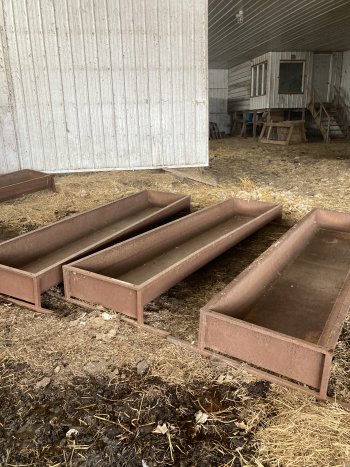 Metal feeders for cattle or sheep. Approximately ten feet long. $150 each. One has a prong hole in it. Please text me at +12045736865