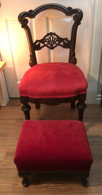 Antique Victorian Chair/Red Velvet Seat & Matching Footstoo