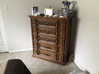 Must Sell - 5 piece solid wood bedroom set - very heavy - includes mattress and bedding