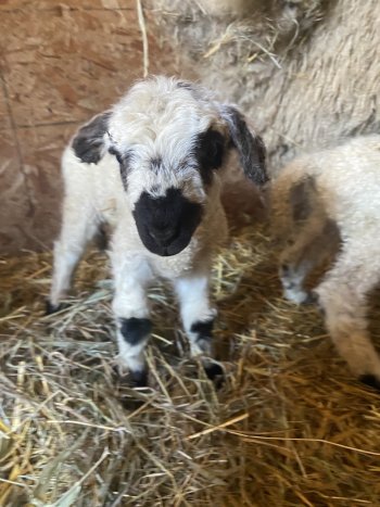 Sire is an F3 Valais Blacknose and mom ewe is a Suffolk/Cotswold/Polyplay/Wensleydale mix.