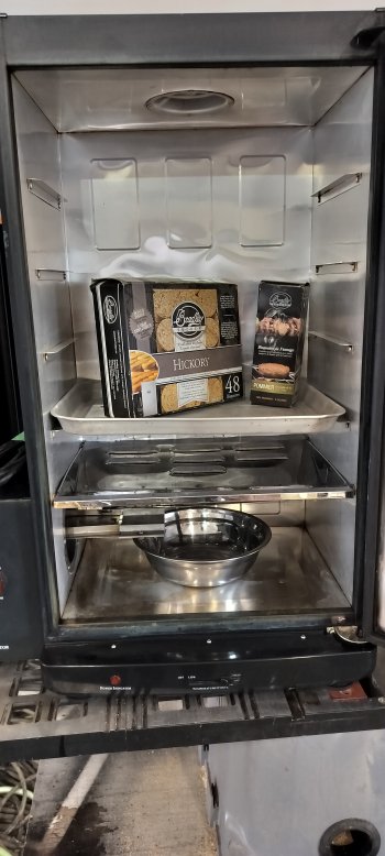 This Bradley smoker is used and works well, its done Deer, Moose, Beef, Sausage, Caribou and one unfortunate squirrel recipe that we don't talk about anymore.It has never failed us and was great for learning and perfecting the art and it is an art, don't let others tell you its not as you can create flavours and marinating uniquely your own. Its been top to bottom cleaned but some small discolorations interior are still present, trays and smoke bowl are clean and ready to be put to the test. We now use a much bigger unit for volume but like I said, this is a great unit to get started on. Comes with hickory and a small box of apple smoke chips as well.