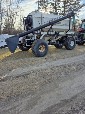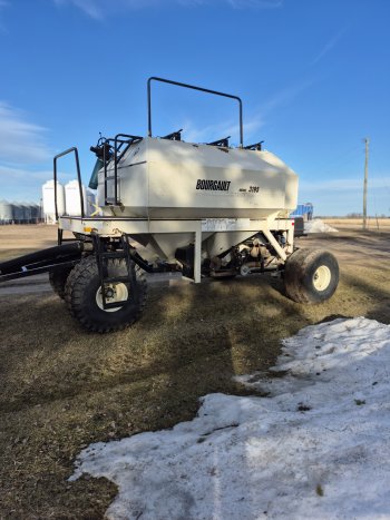 3195 Bourgault Air Cart with 3rd tank option. 3rd tank has multi flight auger to accurately meter low rates like canola or inoculant. It has a rear hitch. The cart also has separate clutches to cut out the 2nd and 3rd tanks. Was not used last year but all bearings and shafts turn freely. Located near Austin.