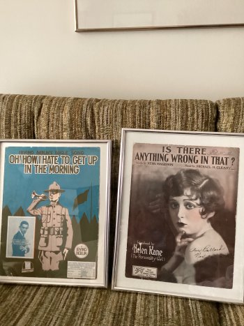 THERE ARE TWO FRAMED VINTAGE SHEET MUSIC BOOKLETS.