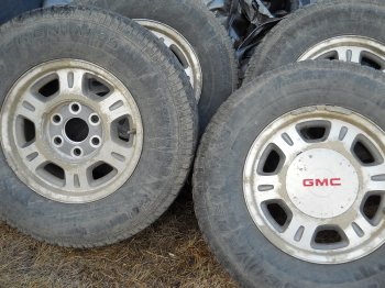 4 stock 2000 Sierra wheels with 245/75/16 tires as pictured. Just removed as upgraded to 17 inch. 6 bolt 5.5 inch mounting. Phone or emails only if interested. $250 for all 4.