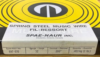 This Spring Steel Music Wire was made by SPAE-NAUR INC. in Kitchener Ontario and is of very high quality.