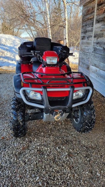 Needs nothing all the racks , plastics and flaring are real nice ,there r no cracks anywhere , seat had a small crack and has been rehopolsted comes w a 2 up seat cargo box as u can see from the pics this is a real nice quad ,only selling because not using $ 6400 located near Dauphin call or text anytime 204 638 2594
