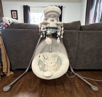 Fisher-Price My Little Lamb Cradle 'n Swing for sale; purchased used from Once Upon a Child, unknown how many owners there were before I purchased it. However, it works great and we are selling it because our child has grown out of it. Some features of the chair are: