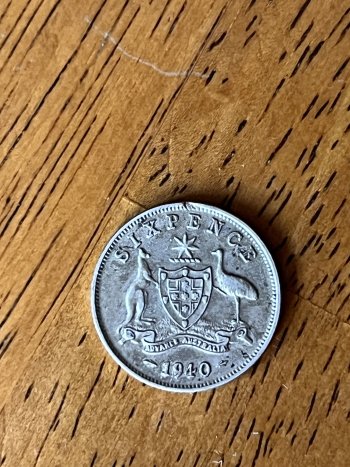 Mid-grade Australian sixpence minted in 1940. Total number minted was only 1.6 million coins so these are not too common. The coin is sterling silver (.925 pure) and contains .0842 Troy ounces of silver.