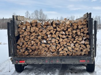 1/3 cord of birch firewood for sale. The wood is measured stacked. Measurements for 1/3 cord are 8ft long, 4ft high, and 16 inches wide. 1/3 cord $195, 1/2 cord $270. Price includes delivery