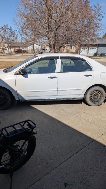 Urgent sale 2006 corolla, 298k km still run very smooth, very good on gas, automatic with two way long range lcd remote start two sets of winter tires, one set is r16 on steel wheels another set is R15 on steel wheels currently installed and one set of R16 on aluminum wheels ( not mounted) ll season tires, with jvc aftermarket stereo and rear camera. As is, not safetied but rocker panel has been cut out and reinforced with pvc for extra protection from debris. Manual windows with power locks and power side mirror
