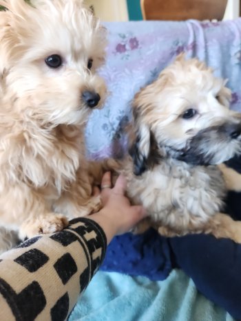 Availble 2 adorable male Morkie poo puppies born on 6th of Jan coming up 14 weeks. Cute playful and an amazing companion. Looking for their forever homes. Mom is golden Morkie 8.5 lbs Dad Silver toy poodle 7 lbs both hypoallergenic minimal shed apartment breed dogs. Great with kids and perfect family companions.