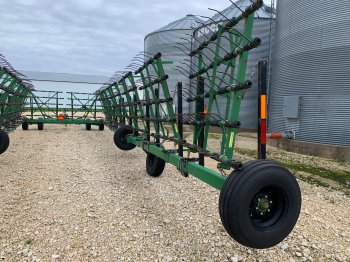 2007 Summers 112 foot hinged wing, 5 row springtooth harrow, 11Lx15 tires, $24,500. Domain, MB, 204-791-3200