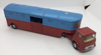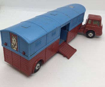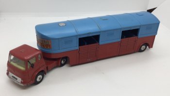 For sale Vintage 1960?s Corgi Toys Chipperfields Circus Horse Transporter, missing horses and one mirror, otherwise decent, 30.00.