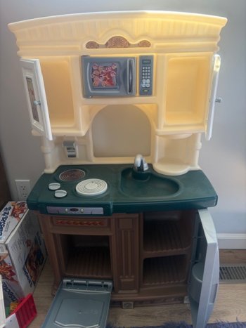 Step 2 Kitchen with accessories. There are sound and lights when a pot is placed on stovetop.