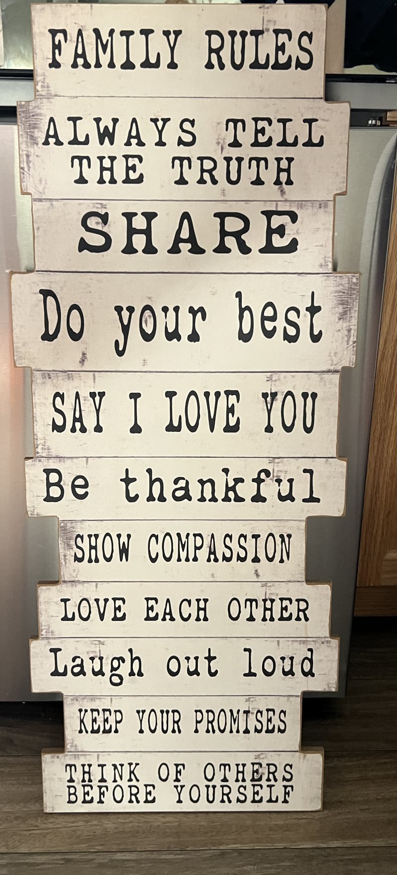 >> Back to listing page for '“Family Rules” wooden vintage look hanging decor'