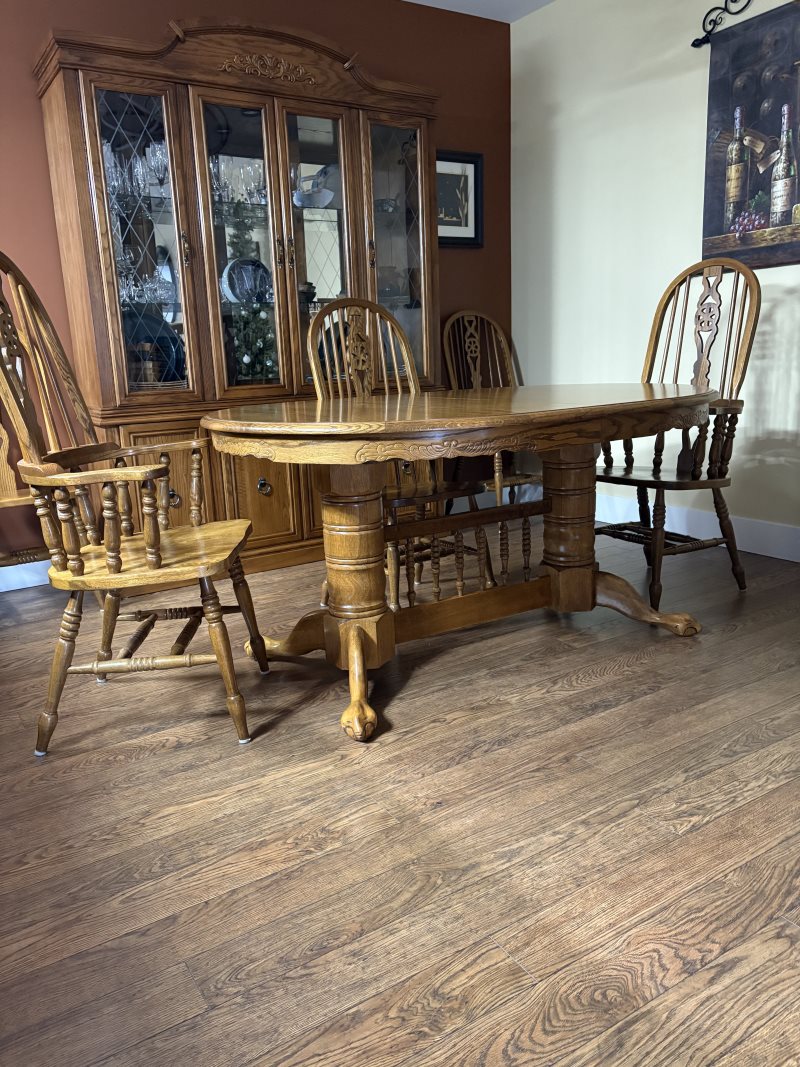 Images: Dining room table, 6 chairs, 2 captain chairs, china cabinet