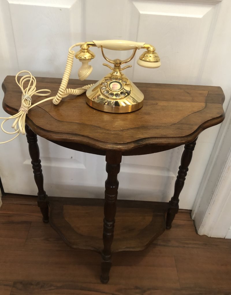 >> Back to listing page for '24” High Vintage 2 Tier Half Moon Wood Stand-Solid Mahogany'