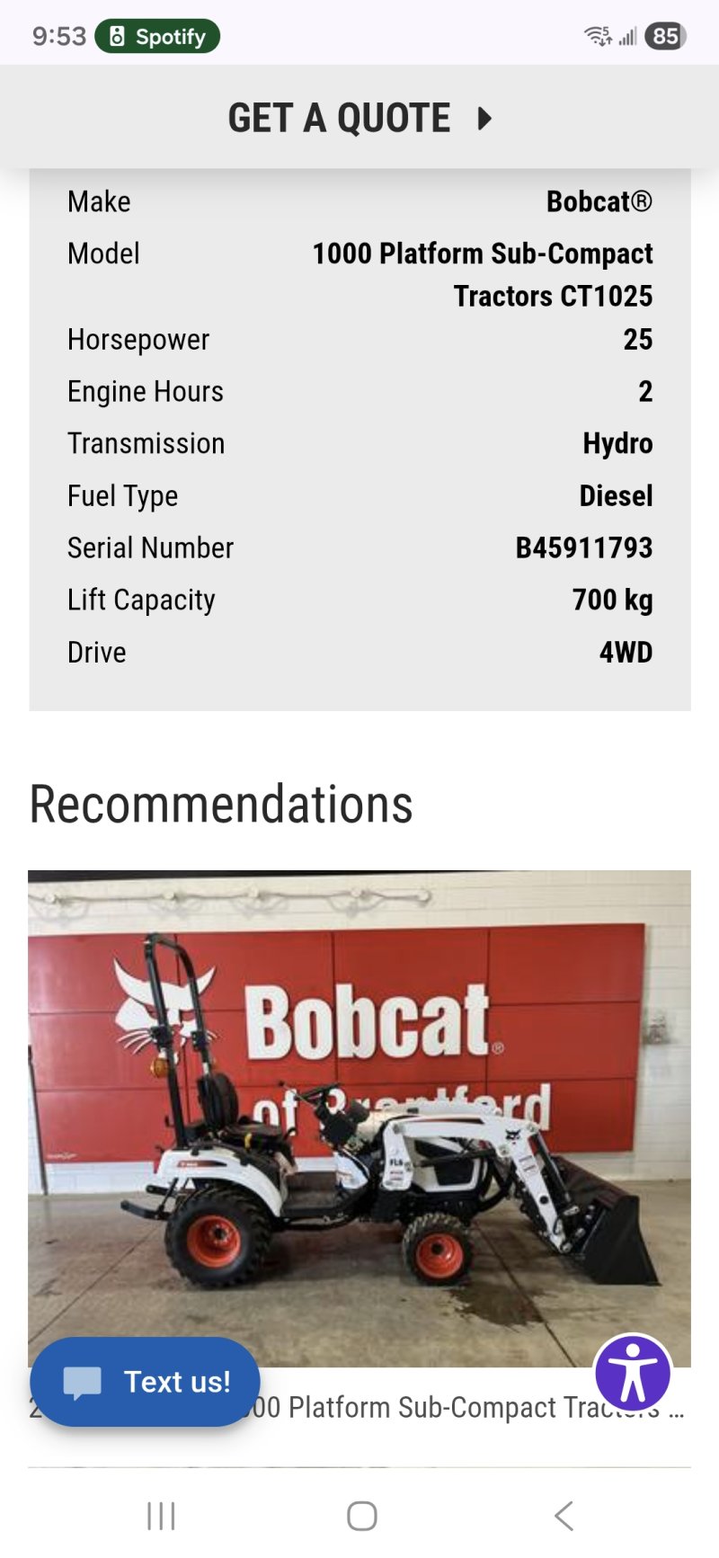 >> Back to listing page for 'BobCat CT 1025'