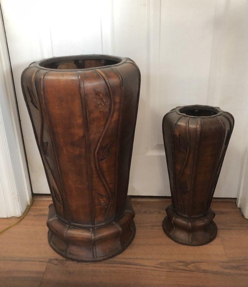 >> Back to listing page for '2 Nice Asian Vintage/Antique Carved Wooden Floor Vases'