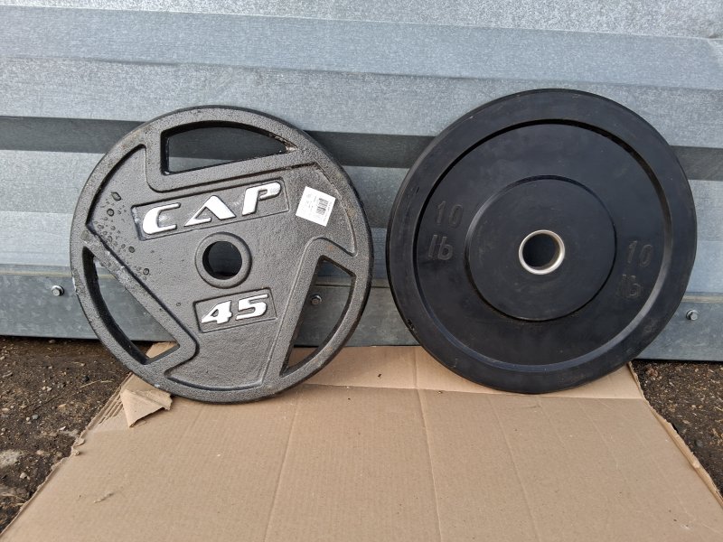 Images: weight bench, weights and bar