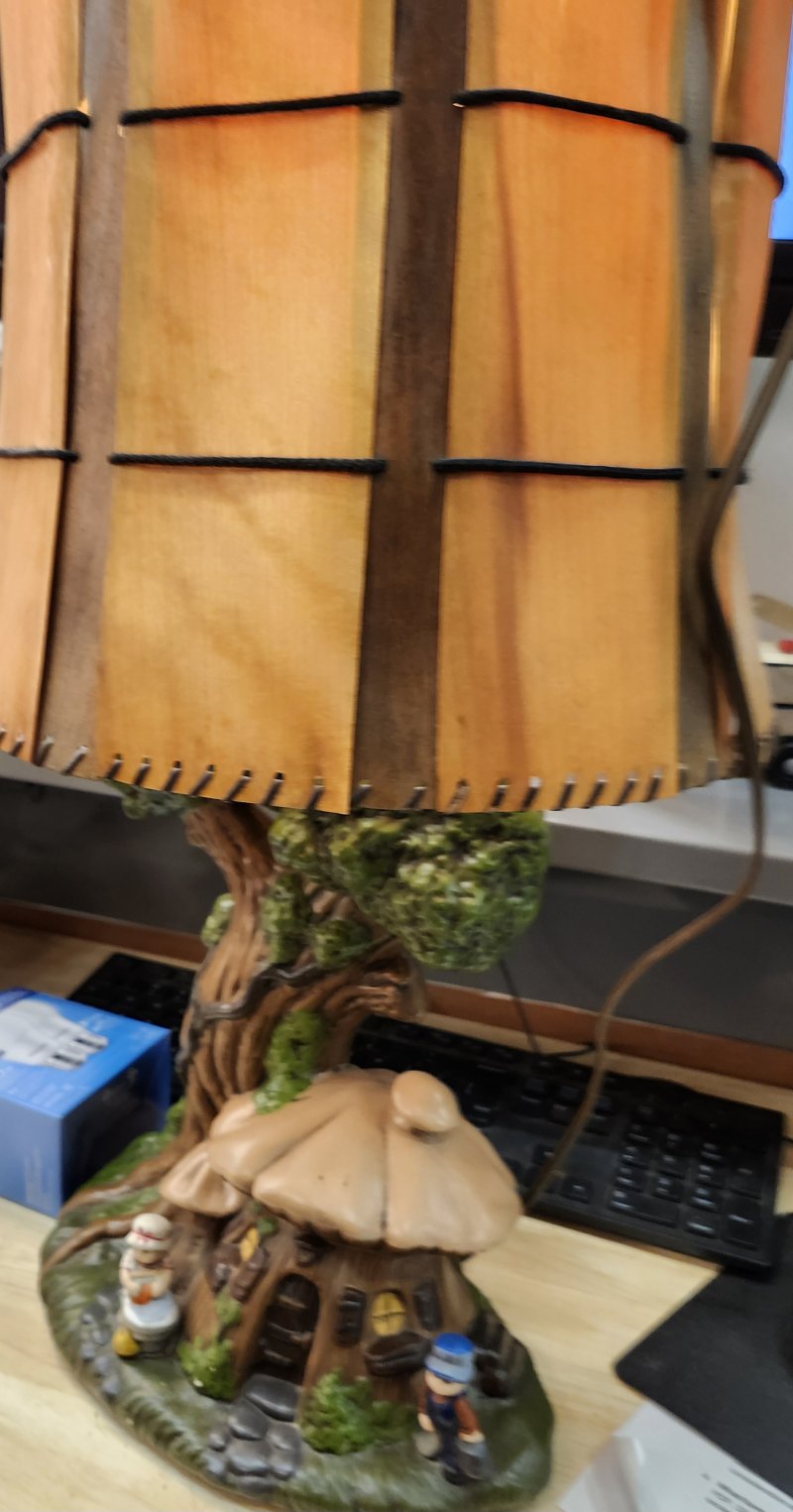 >> Back to listing page for 'Antique Lamp with wooden veneer shade'