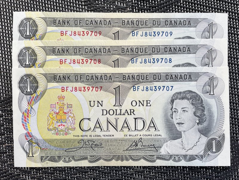 Images: 1973, 3, $1 Bills, Unc., Consecutive
