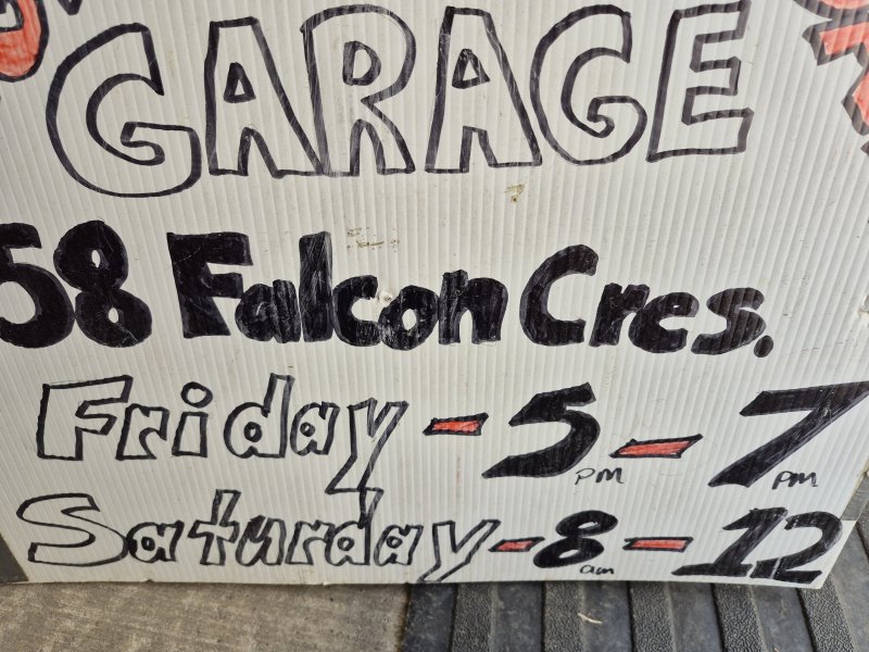 >> Back to listing page for '58 Falcon Cres, back alley Garage sale'