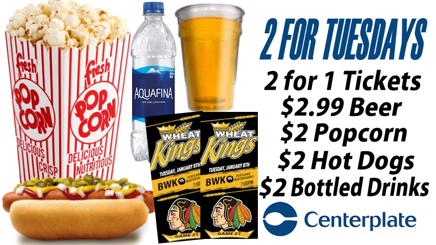 Tonight is one of only two 2 FOR TUESDAY'S of the 2018-19 season. Take advantage of all the deals tonight Westman!