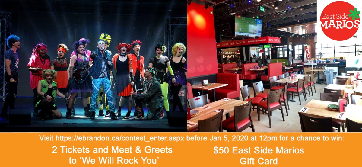 A chance to win 'We Will Rock You' tickets and an East Side Mario's gift card